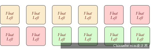 ![]() 为了从视觉上较好的把相似的块联系起来,需要在必要的地方开启新行,这里是颜色改变的地方。如果每个颜色组都有一个父元素的话,我们可以使用 overflow 或者 简单清除方法。或者,在每组之间用一个空div方法。额外的 div 之前并不存在,可以自己试试来看看哪个方法好。 ![]() 浮动的问题 浮动因脆弱而饱受诟病。大多数的脆弱性来自于 IE6 及其一系列的浮动相关 bug。因为越来越多的设计师不再支持 IE6 了,你也可以不关注它了。不过对于那些要关注的人来说,这里有些大概。