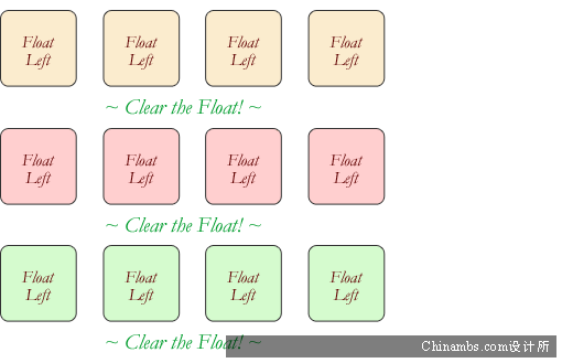 #e# 伟大的塌陷 使用浮动(float)的一个比较疑惑的事情是他们怎么影响包含他们的父元素的。如果父元素只包含浮动元素,那么它的高度就会塌缩为零。如果父元素不包含任何的可见背景,这个问题会很难被注意到,但是这是一个很重要的问题。 ![]() 塌陷的直观对立面更不好,看看下面的情况: ![]() 当上面的块级元素自动扩展以适应浮动元素时,段落间的文本流中会出现非自然的空白换行,而且没有有效的方法来修正这个问题。对于这种情况,设计师的抱怨会更甚于对塌陷的抱怨(没理解,不是设计完成之后才会进行页面编码吗?- 糖伴西红柿)。 为了防止怪异的布局和跨浏览器的问题,塌陷问题几乎总是被要处理的。我们在容器中的浮动元素之后,容器结束之前来清除浮动。 清除浮动的技术 如果你很明确的知道接下来的元素会是什么,可以使用 clear:both; 来清除浮动。这个方法很不错,它不需要 hack,不添加额外的元素也使得它有良好的语义性。当然事情并不是都可以这样解决的,工具箱中还是需要另外几个清除浮动的工具。
